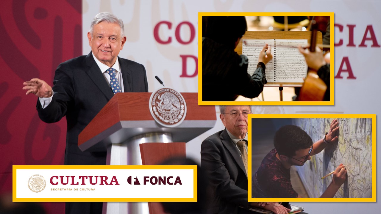 Foto: AMLO / Twitter / Logo – Cultura – FONCA / Cultura Colectiva.