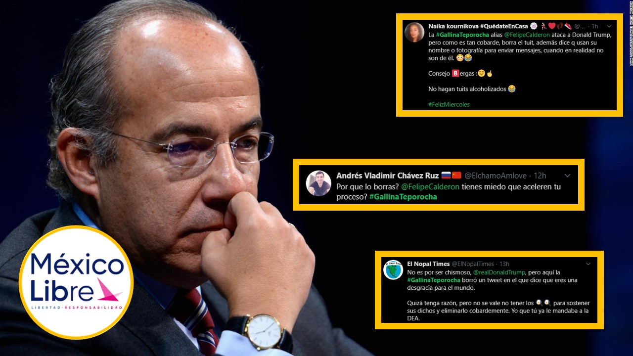 Las redes estallaron en las últimas horas, esto debido a un tweet que borró el exmandatario Felipe Calderón Hinojosa, mismo en el que había compartido un mensaje de la activista Isabel Miranda de Wallace en contra del presidente de Estados Unidos, Donald, Trump. Ante este acto por parte de Calderón, usuarios lanzaron el hashtag #GallinaTeporocha en alusión al miedo que el expresidente le tiene a Donald Trump y por lo que, aseguran, fue el motivo para que borrara el tweet.
