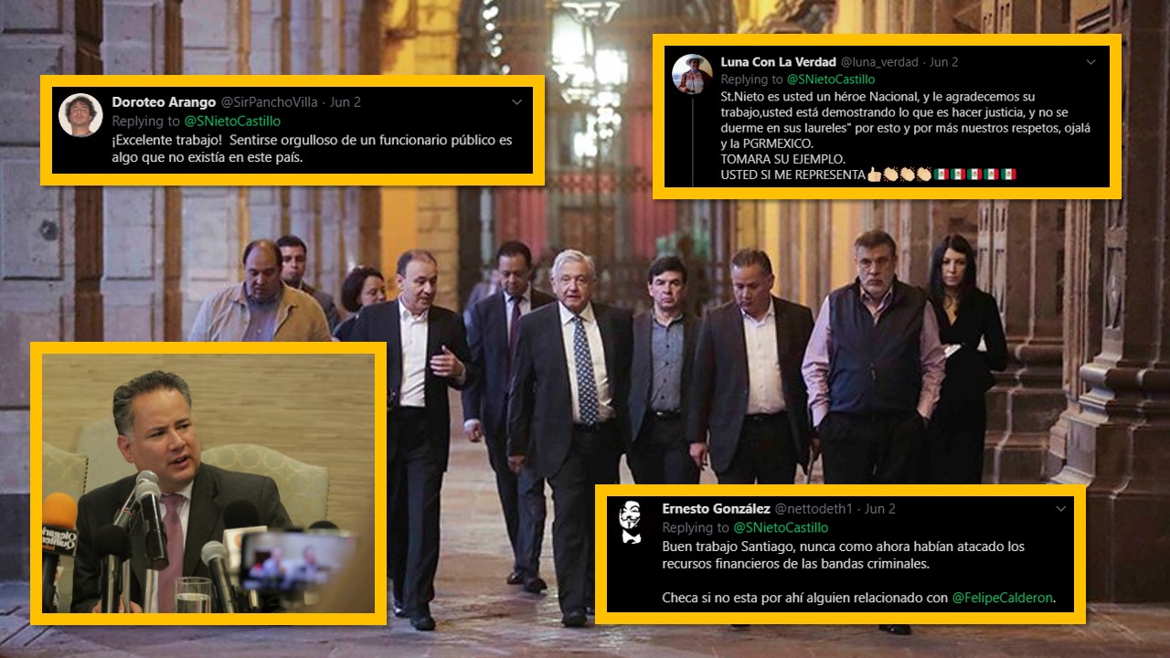 «La UIF emitió un acuerdo de bloqueo de 1770 personas físicas y 167 personas morales presuntamente ligadas con el CJNG. Fue posible por el intercambio de información entre las distintas áreas del gabinete de seguridad de México, además de datos de la DEA. A todas y todos gracias», expresó Santiago Nieto Castillo por medio de sus redes sociales.