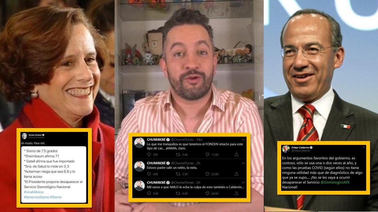 No obstante, ello pareció resultarles muy cómico a el expresidente Felipe Calderón, a Denise Dresser y a Chumel Torres, debido a que inmediatamente y aun sin tener claridad sobre los daños del sismo aprovecharon para compartir su nada oportuno humor político.