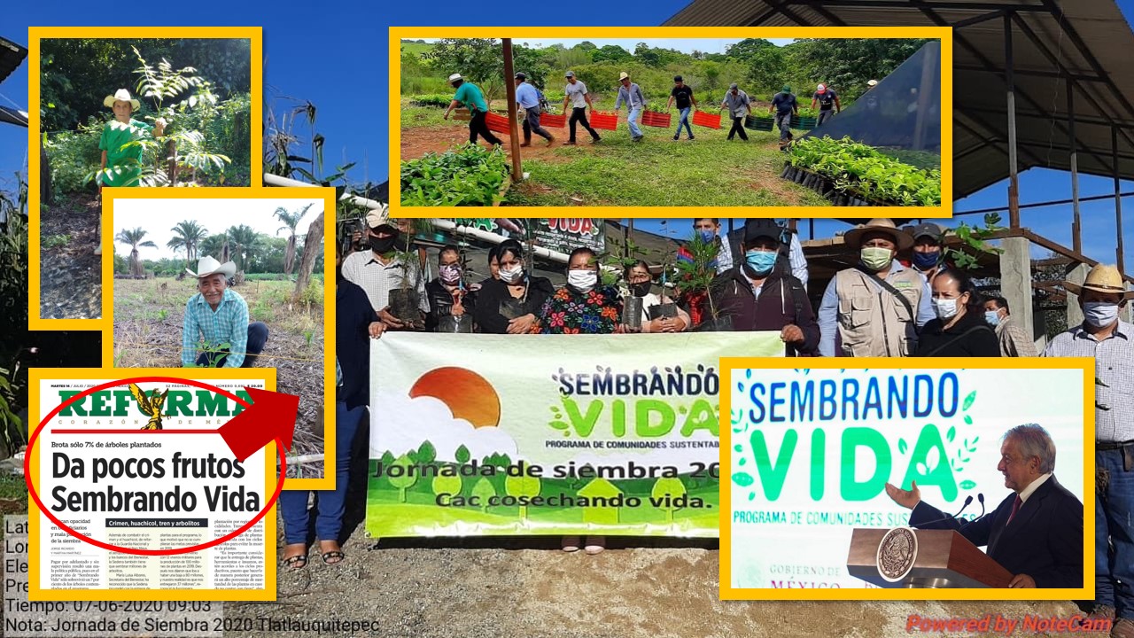 «Como se comunicó en conferencia de prensa del 4 de junio de 2020, la sobrevivencia a nivel nacional de los árboles de Sembrando Vida es de 89.1% y no del 7% como se afirma en la nota Da pocos frutos Sembrando Vida», aclaró la Secretaría de Bienestar.