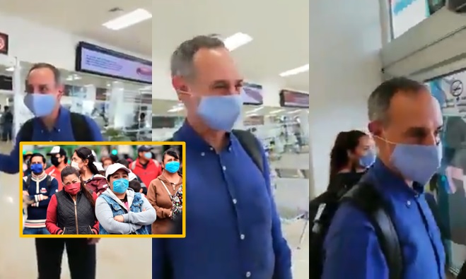 «La gente se está muriendo», recriminó un ciudadano a Hugo López- Gatell, subsecretario de Prevención y Promoción de la Salud a su llegada al Aeropuerto Internacional de Tuxtla Gutiérrez, en su visita a Chiapas.