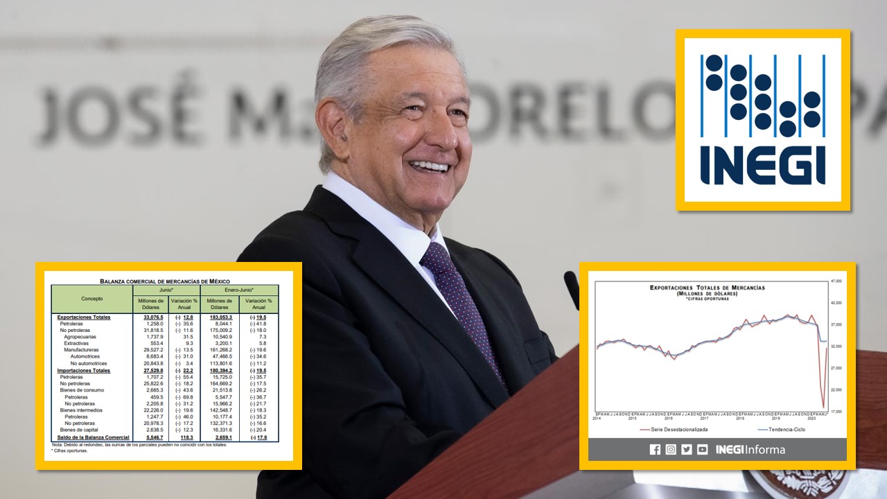 «En junio de 2020 se registró un superávit comercial de 5 mil 547 millones de dólares, saldo que se compara con el superávit de 2 mil 541 millones de dólares obtenido en igual mes de 2019. En los primeros seis meses de este año, la balanza comercial presentó un superávit de 2 mil 659 millones de dólares»,