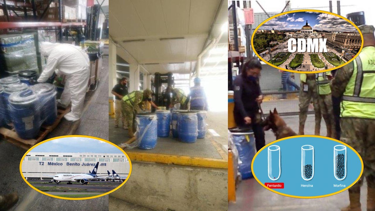 La Administración General de Aduanas (AGA), informa del decomiso de 220 kilogramos de fentanilo procedente de España en la aduana del Aeropuerto Internacional de la Ciudad de México (AICM).