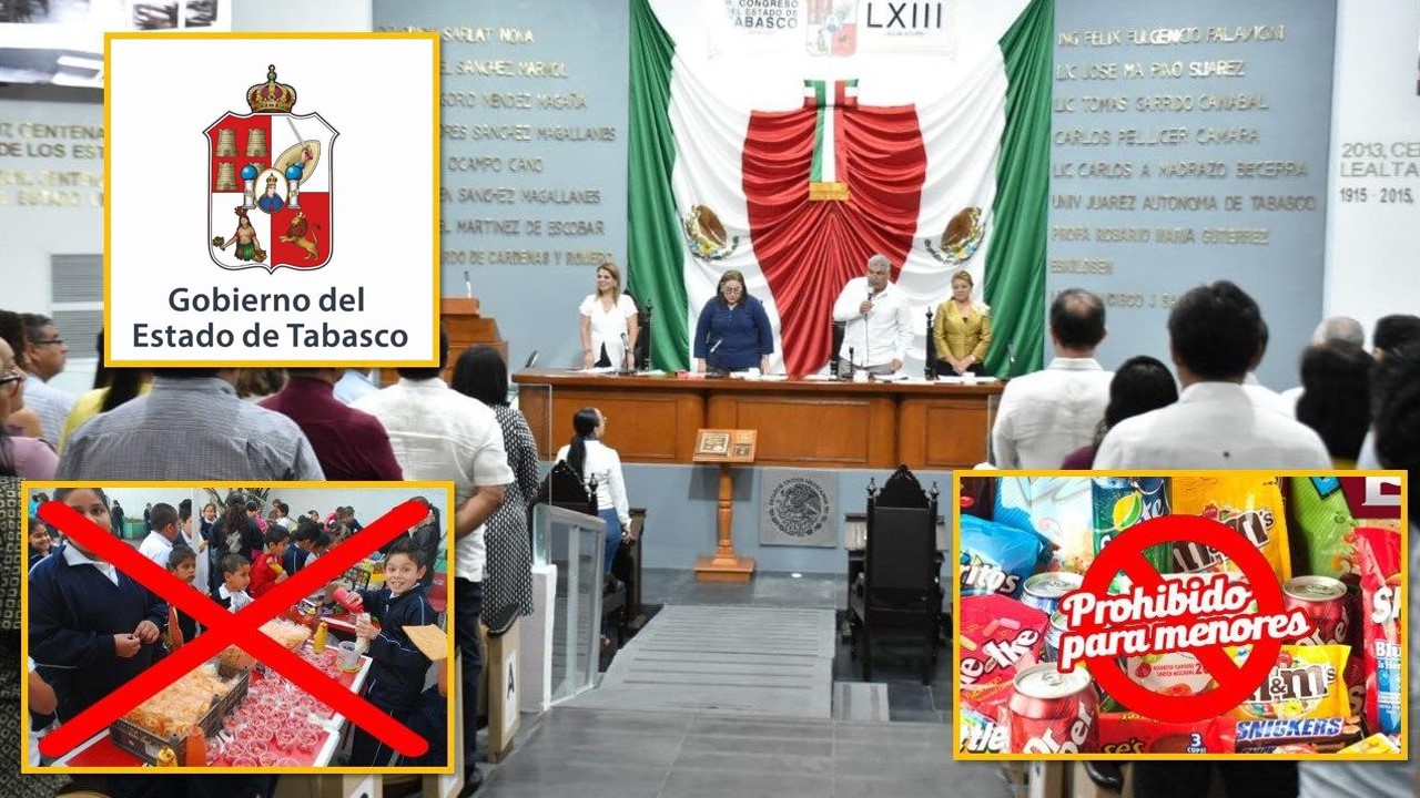El Estado de Tabasco en el pleno de su soberana voluntad representada en su Congreso con total facultad delegada por el pueblo de Tabasco y la constitución, aprobó La Ley Histórica de Vida Saludable, para proteger la población de los más vulnerables, las niñas, niños y adolescentes, de ahora en adelante quedó prohibida la venta de Comida Chatarra y bebidas azucaradas, altas en contenidos caloríficos.