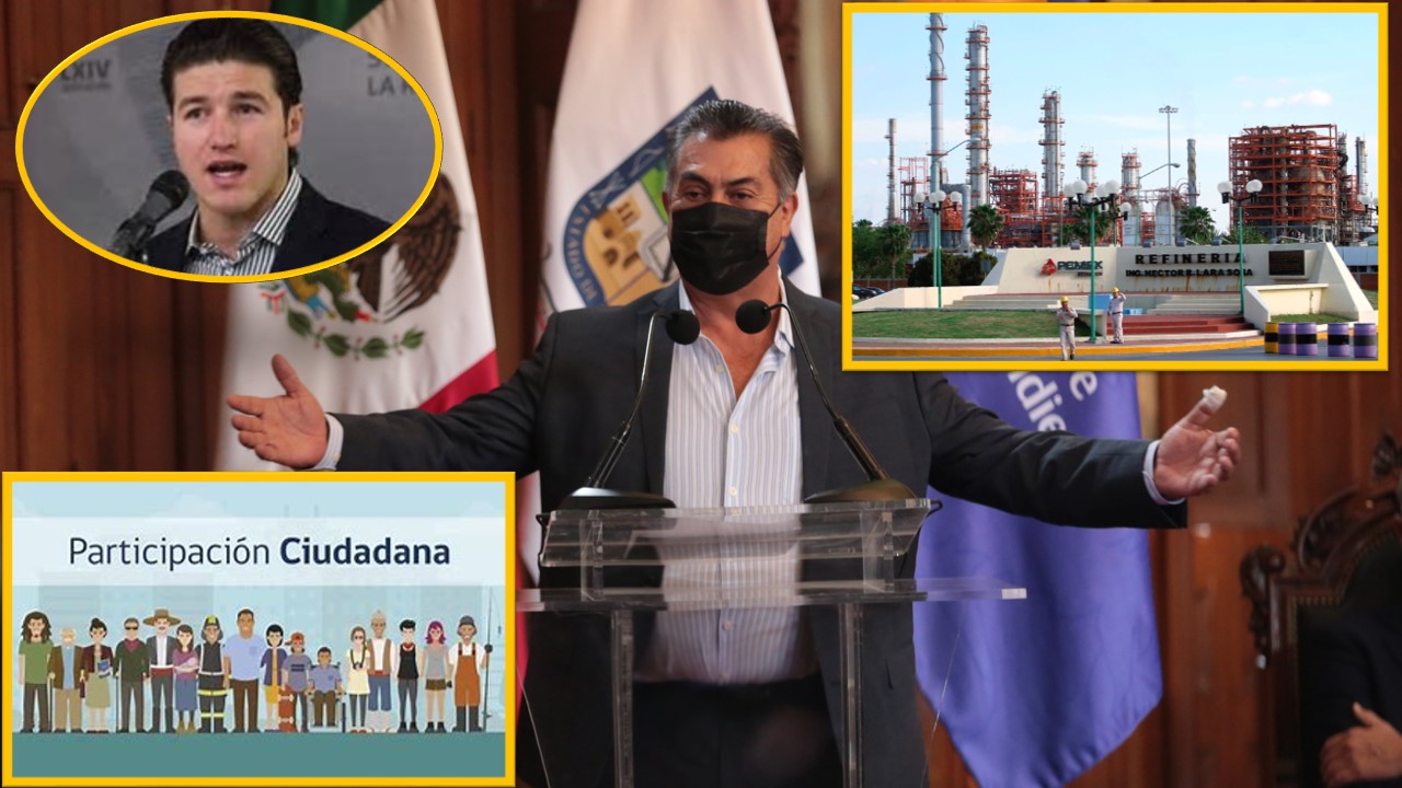 Jaime Rodríguez Calderón, El Bronco, se sumó a Samuel García y exigió consulta para que refinería no opere en Nuevo León, pues cabe recordar que días anteriores el senador de Movimiento Ciudadano trató de clausurar de forma simbólica la Refinería de Cadereyta. Por su parte, el gobernador pidió al 33% de los senadores, que se extienda una petición al Congreso de la Unión para convocar a una consulta pública para que dicha refinería siga operando o no.