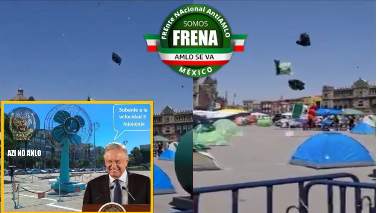 Durante su conferencia de prensa matutina el presidente López Obrador se burló de lo sucedido con las casas de campaña de FRENAAA y señaló que «me culparon de volar sus casas con ventiladores gigantes», esto luego de que el día de ayer un viento bastante fuerte hiciera volar por los cielos del Zócalo el plantón anti AMLO.