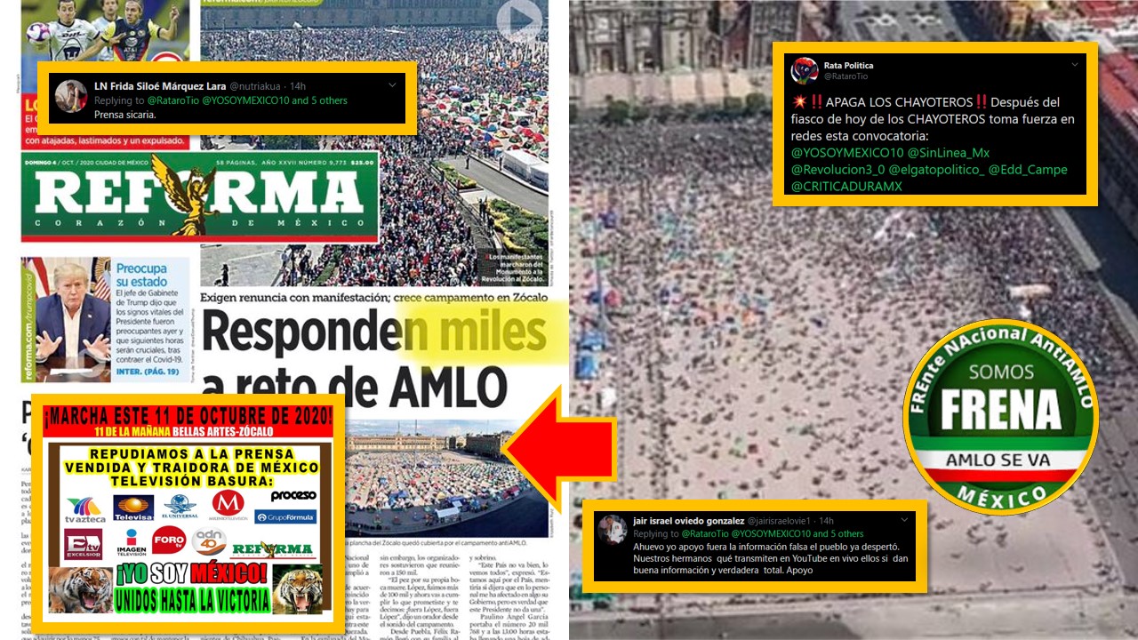 Ante las continuas noticias falsas difundidas por los medios más conocidos, los cuales, en esta última oportunidad, trataron de «inflar» las marchas en contra del presidente López Obrador, encabezadas por Gilberto Lozano y su organización Frente Nacional Anti-AMLO (FRENAAA), cibernautas se han mostrado disgustados, planteando una convocatoria propia para lanzarse en contra de estos «chayoteros».