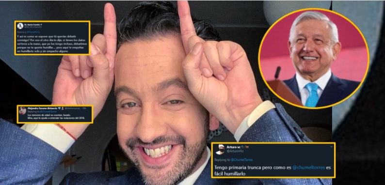 Y es que Torres hizo un comentario en su cuenta de Twitter, en donde indicó que «30 millones votamos por López Obrador, 97 millones no». De inmediato, el común de las respuestas fue «los niños no votan, Chumuel».