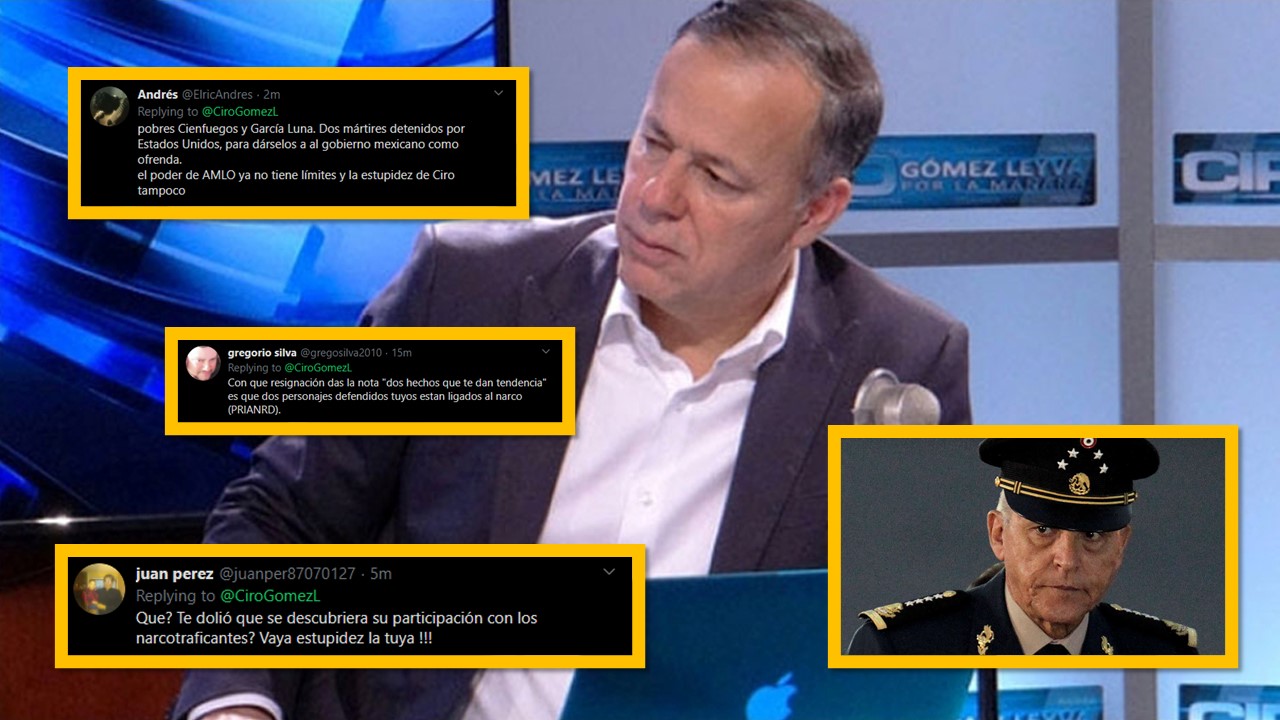 A los usuarios de Twitter no se les escapa ni una y tras haberse confirmado la detención del exsecretario de Defensa de México, general Salvador Cienfuegos Zepeda, cibernautas notaron que en pleno programa, el controversial periodista Ciro Gómez Leyva dio más relevancia que haya sido detenido en Estados Unidos, al igual que Genaro García Luna, por lo que tundieron al periodista por tratar de minimizar este logro de la lucha contra la corrupción.