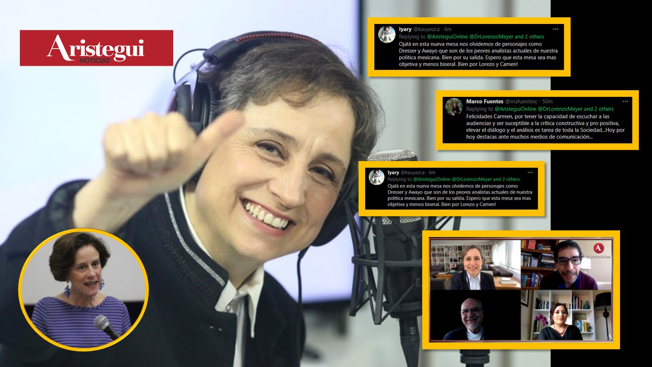 Tras el estreno de la nueva mesa de análisis del medio Aristegui Noticias, usuarios en redes celebraron la decisión de la periodista, agradeciendo a la reconocida Carmen Aristegui por haber «escuchado a su audiencia» y haber retirado a los controversiales Denise Dresser y Sergio Aguayo.