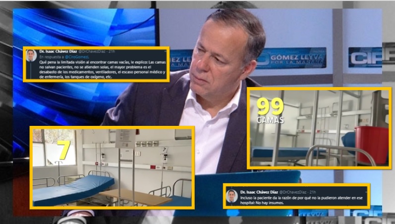 «El reportero Humberto Padgett logró entrar al Hospital General La Villa y encontró varios cuartos vacíos y al menos 99 camas desocupadas. A pesar de esto, a Silvia le dijeron que no había lugar para atenderla y tuvo que irse a otro hospital», escribió Gómez-Leyva, refiriéndose al caso de una mujer que no fue atendida en dicho nosocomio por falta de insumos.