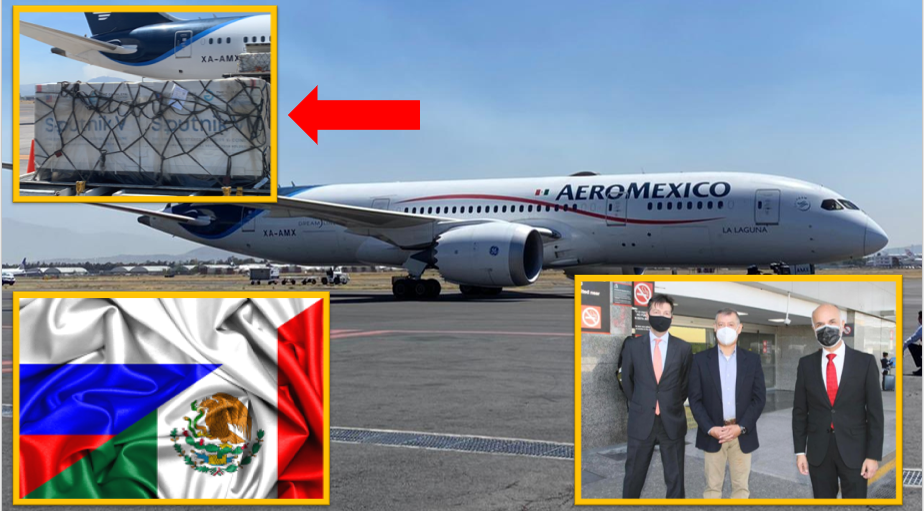 El embarque fue recibido por Bernardo Aguilar Calvo director general para Europa en SRE, Konstantin Dorkhin, ministro consejero de la Embajada de Rusia y Pedro Zanteno Santaella, director general de Laboratorios de Biológicos y Reactivos de México (Birmex).