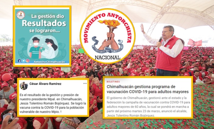 «El gobierno de Chimalhuacán, gestionó ante el estado y la federación la campaña de vacunación contra COVID-19 para adultos mayores de 60 años, la cual se pondrá en marcha a partir del próximo martes 23 de marzo, anunció el alcalde, Jesús Tolentino Román Bojórquez», dictó el comunicado de prensa del 19 de marzo.
