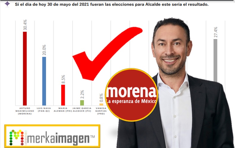 Con un 10 por ciento de ventaja, sobre su más cerca seguidor, se mantiene Arturo Maximiliano rumbo a la alcaldía de Querétaro, así lo dio a conocer la casa encuestadora MerkaImagen.