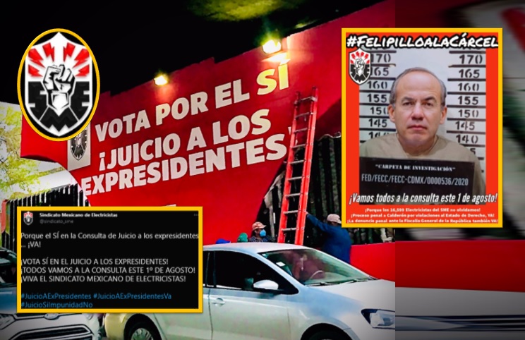 El Sindicato Mexicano de Electricistas (SME) llamó a los mexicanos a participar en la consulta popular del próximo 1 de agosto, en donde se preguntará a la ciudadanía si se desea enjuiciar a los expresidentes de México.