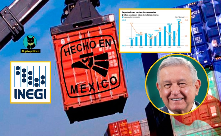 Con el gobierno de Andrés Manuel López Obrador y pese a la pandemia, las ventas de mercancías mexicanas al exterior registraron un crecimiento durante 2021, su mayor alza en 11 años.