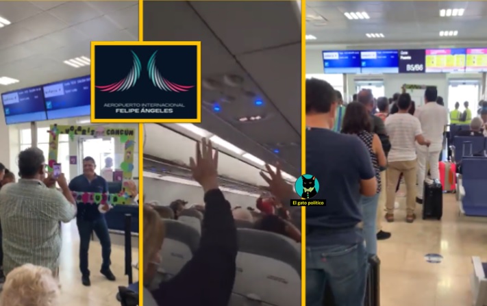 Videos de gente formada para abordar los primeros vuelos del AIFA, incluso gente ya dentro de un avión que contentos celebran ante las cámaras, son los que desfilan en la red.