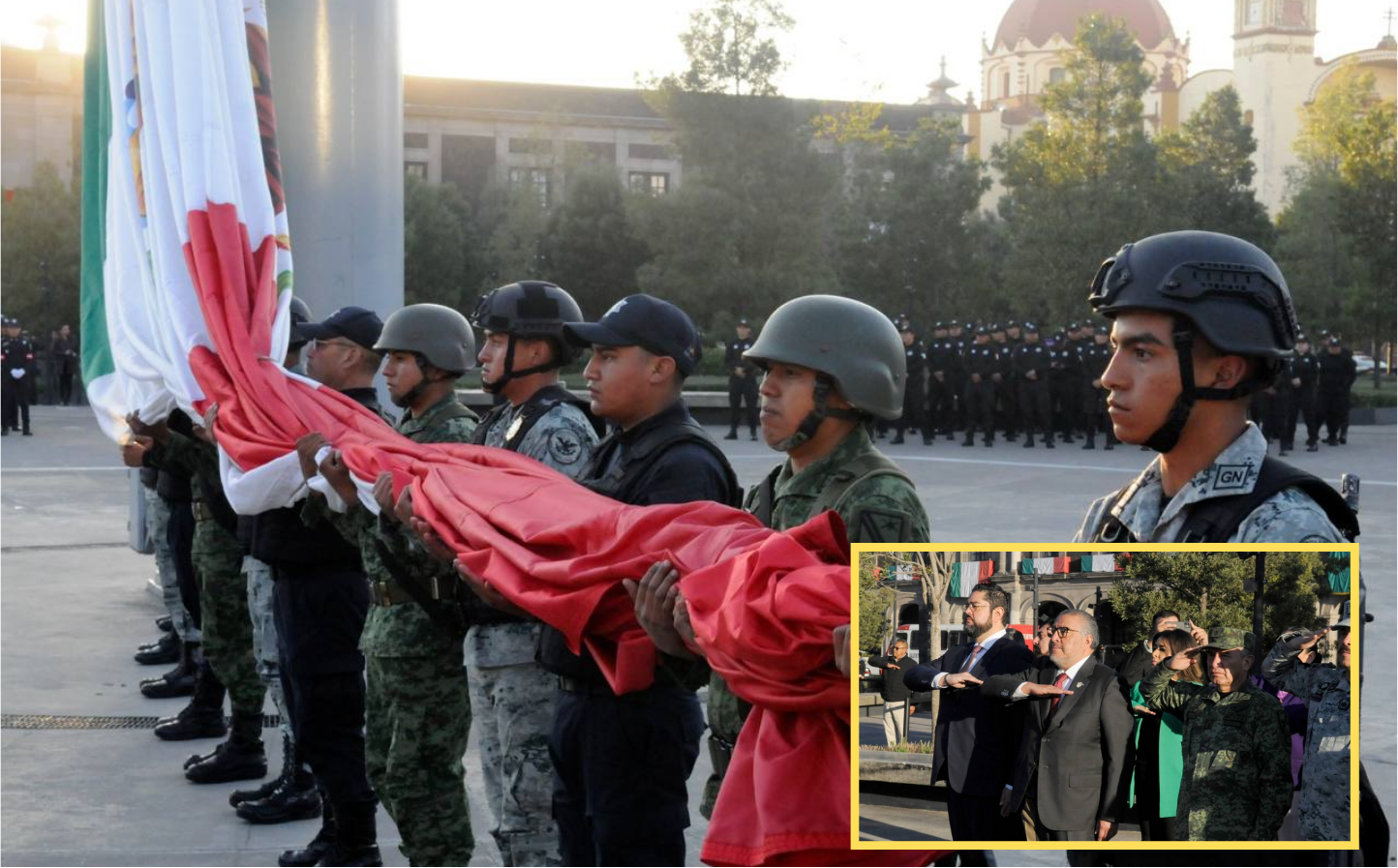 TOLUCA, Estado de México. – En representación de la Gobernadora Delfina Gómez Álvarez, el Secretario General de Gobierno, Horacio Duarte Olivares, encabezó la Ceremonia de Izamiento de la Bandera Nacional, donde participaron las y los integrantes de la Mesa de Coordinación para la Construcción de la Paz, así como las y los integrantes del Gabinete Legal y ampliado.