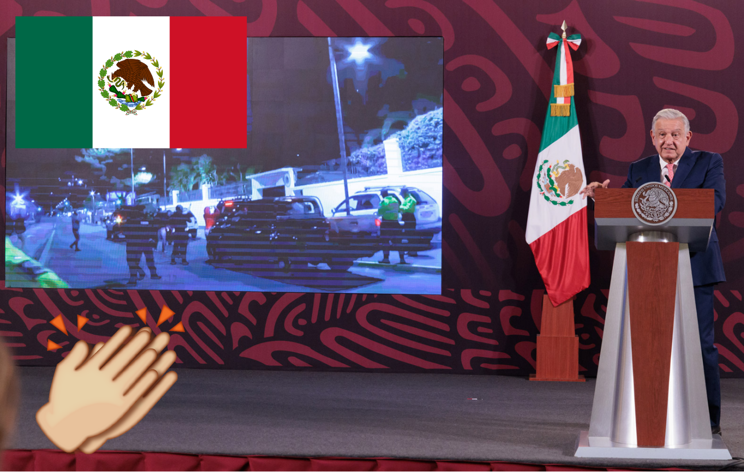 “Nosotros somos juaristas, nada por la fuerza, todo por la razón y el derecho. Esto para los hermanos ecuatorianos, que son nuestros hermanos, para que no haya nada que temer. Como siempre lo decimos: no somos iguales, nosotros no somos autoritarios, no somos fachos, no pensamos que los problemas se resuelvan con el uso de la fuerza; nosotros somos pacifistas y siempre lo vamos a ser”, agregó.