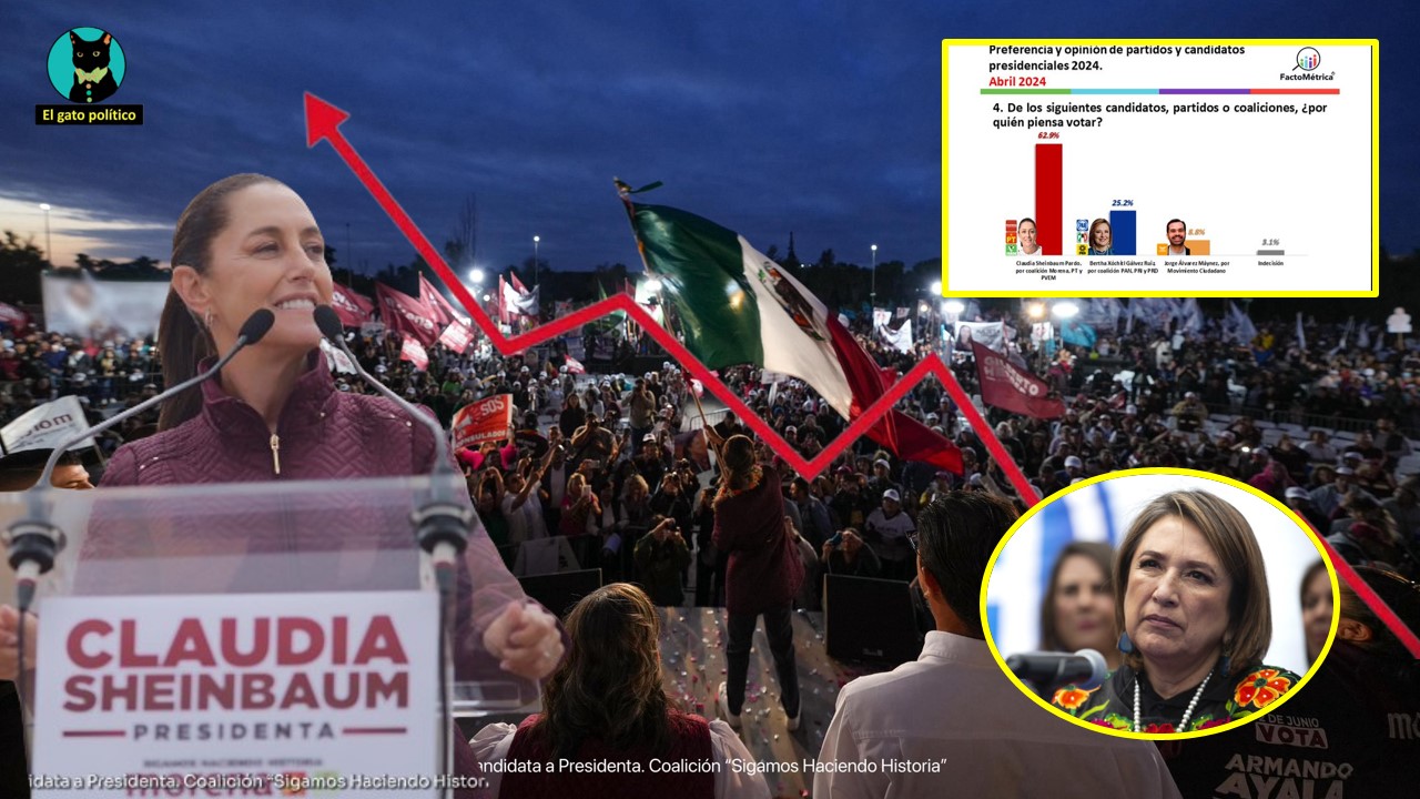 La encuestadora FactoMétrica mostró cómo Claudia Sheinbaum lidera la carrera presidencial con un 62.9 por ciento, superando por 37 puntos porcentuales a la candidata Xóchitl Gálvez.