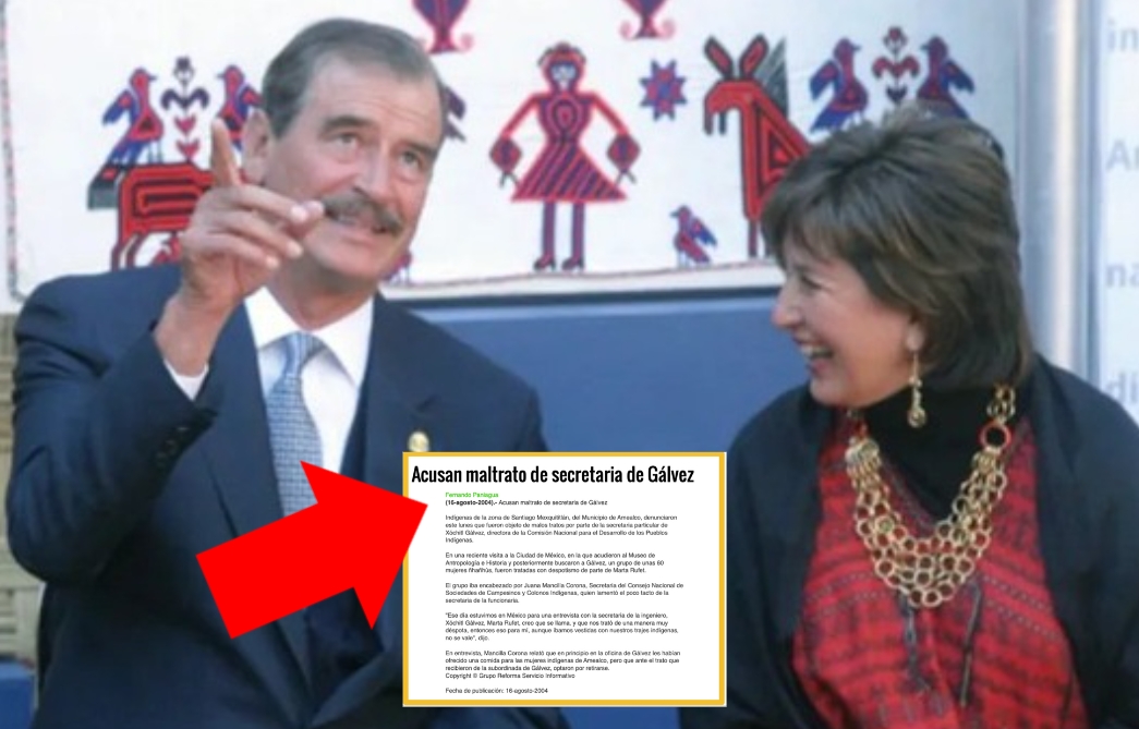 Resulta que cuando Gálvez estaba al frente de la Comisión Nacional para el Desarrollo de los Pueblos Indígenas, en el sexenio de Vicente Fox, su exsecretaria particular, Marta Rufet, fue acusada de maltratar a miembros de una comunidad indígena en Amealco, Querétaro, en 2004,